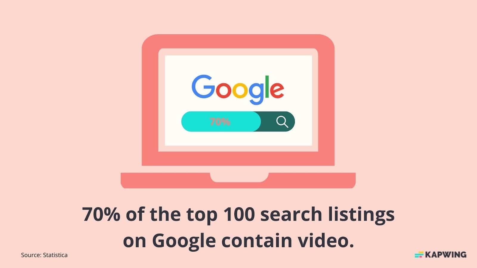 You should care about video for SEO because Google cares about it. As the world’s number one search engine, Google prioritizes placing relevant videos in search results. As the owner of YouTube, it makes sense that Google would do this, but it shows videos from other platforms, too. In fact, 70% of the top 100 search results listings contain video.