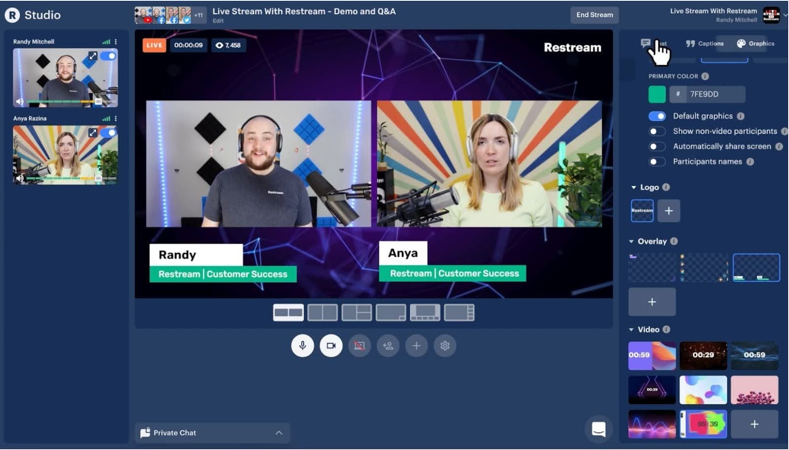 We typically think of podcasts as an on-demand genre of content, but there’s not a hard and fast rule. If you have an audience that engages with live content, streaming your video podcast live can be a great way to generate extra views. Restream’s software supports both live streaming and high-fidelity recording, so you can podcast both ways without sacrificing quality in either direct.