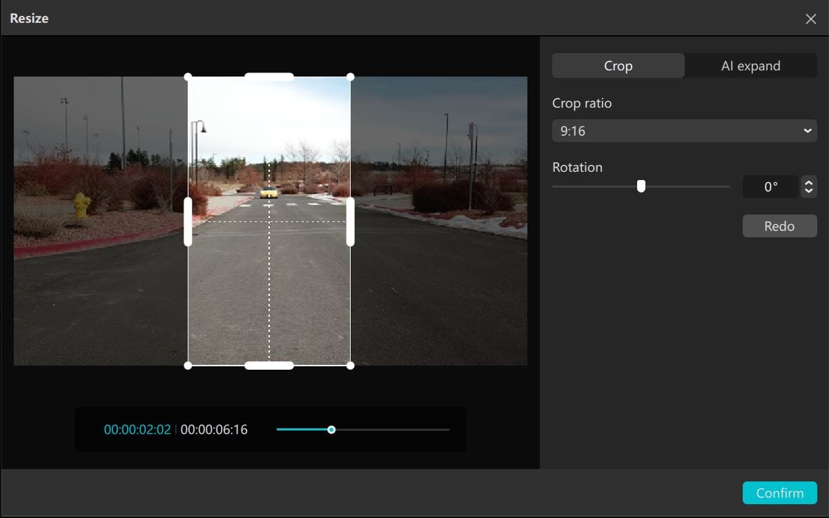 After selecting the aspect ratio, you can adjust the framing within the same menu. Drag your video to your desired location, and your resized video is ready to be exported.