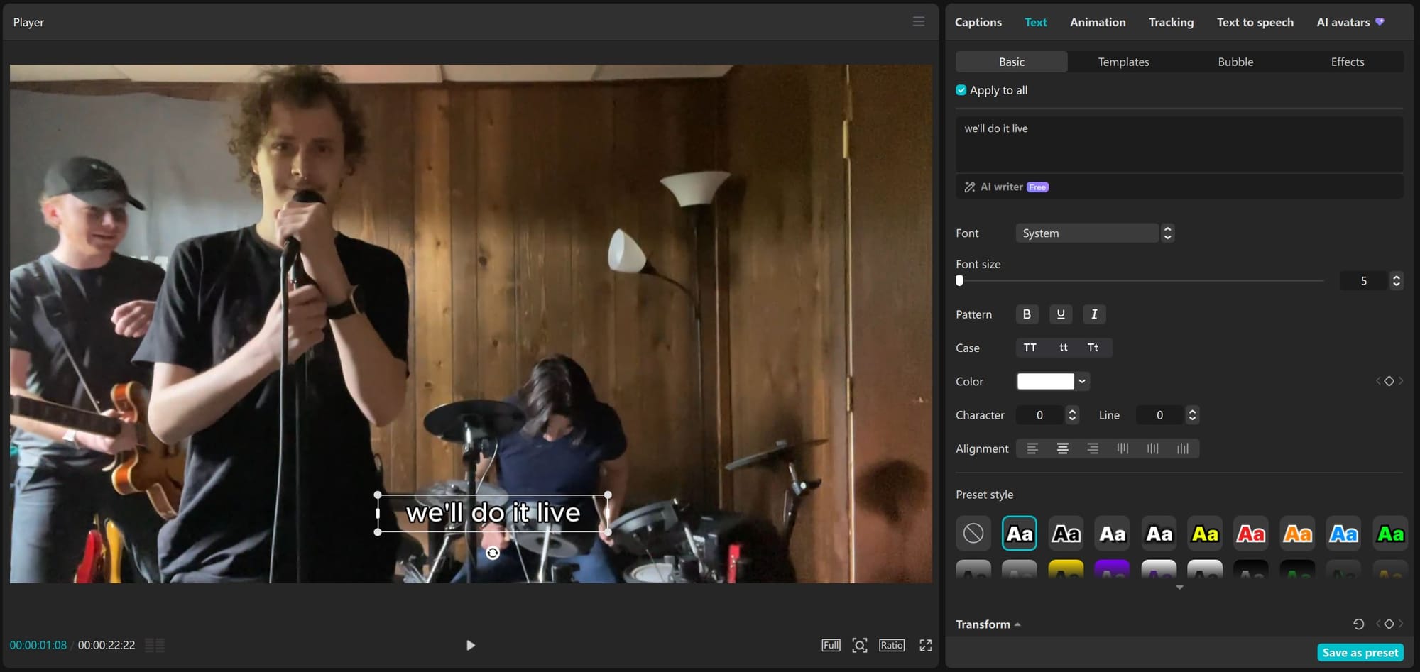 Both Kapwing and CapCut can generate and edit automatic captions, but Kapwing’s interface is more user-friendly. The ability to edit captions while simultaneously customizing their appearance makes for a smoother editing experience.