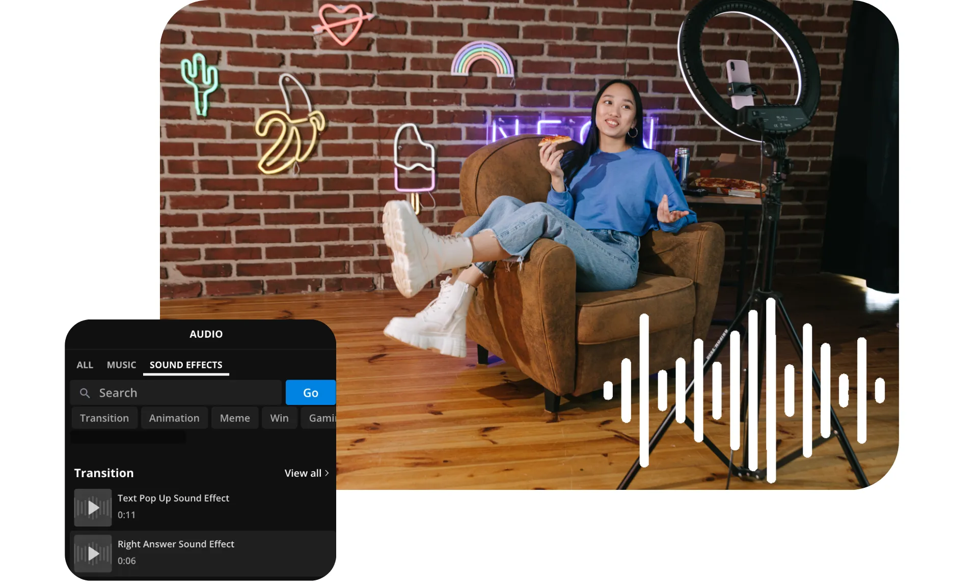 Конечно, ты можешь создавать собственные звуковые эффекты с помощью Kapwing и затем добавлять их в свои видео в студии редактирования. Ты даже можешь создать совершенно новое видео с помощью AI Video Generator, а затем добавить к нему созданные звуковые эффекты.