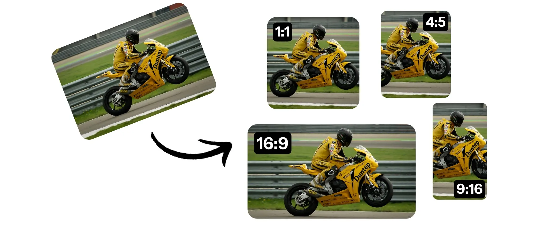 Make future videos fit right on any social media. With this video resizer, you can change one video to work well on all platforms like TikTok, Instagram, and YouTube. Edit your video formats and save them directly in your own workspace.